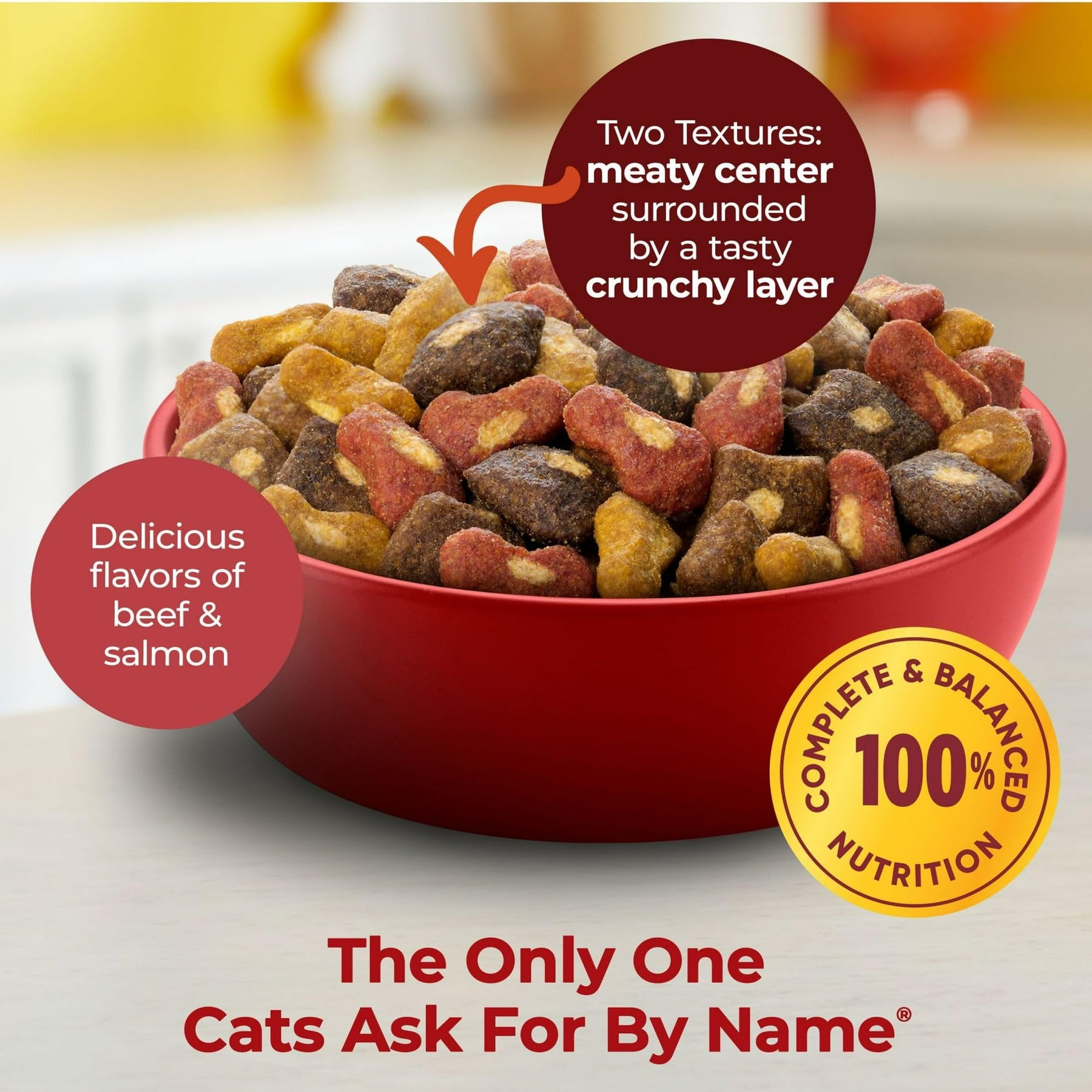 Tender Centers Dry Cat Food with Basted Bites - Beef & Salmon Flavors - Meaty Inside Crunchy Outside - Complete and Balanced Nutrition for Adult Cats - 3 Pound Bag