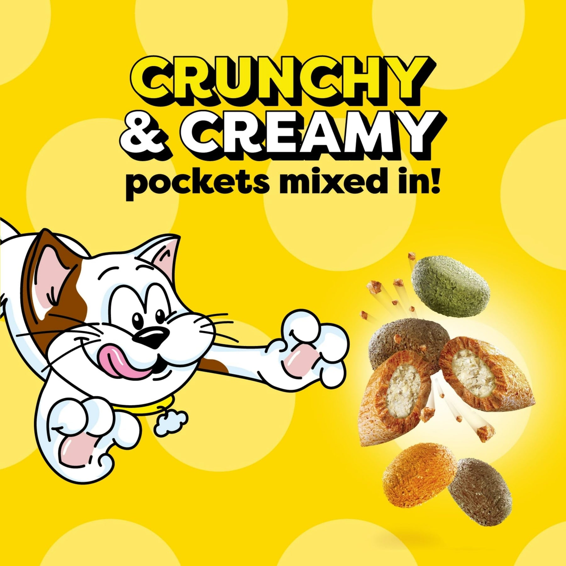 • Our dry cat food has irresistibly crunchy on the outside and soft-on-the-inside pockets mixed in.