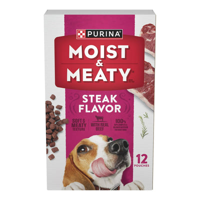 Trase A Moist and Meaty Steak Flavor Soft Dog Food Pouches for Adult Dogs, Made with Real Beef, 72 oz, 12 Count