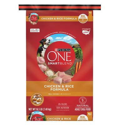 Trase A Purrina One Dry Dog Food for Adult Dogs, High Protein Dog Food with Added Vitamins and Minerals, Real Chicken & Rice, 16.5 lb Bag